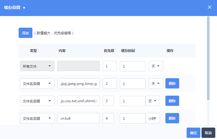 您也可以单击删除,对当前配置的缓存策略进行相应操作。
