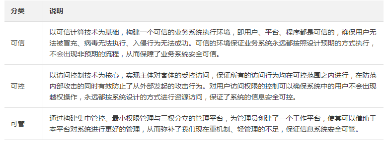 以可信认证为基础、以访问控制为核心,构建可信、可控和可管的立体化纵深防御体系。