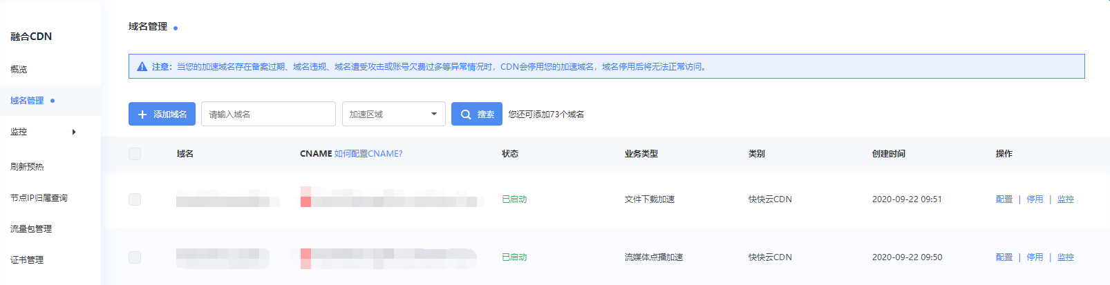 c.配置完CNAME后,由于状态更新约有10分钟延迟,控制台的域名列表页可能仍提示“未配置CNAME”,请您暂时忽略。