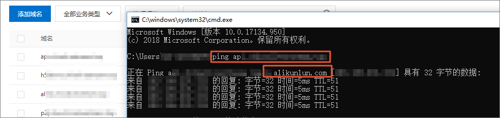 - 在命令行中ping加速域名,如果返回的解析结果和CDN控制台上该加速域名的CNAME值一致,则表示CDN加速已经生效。
