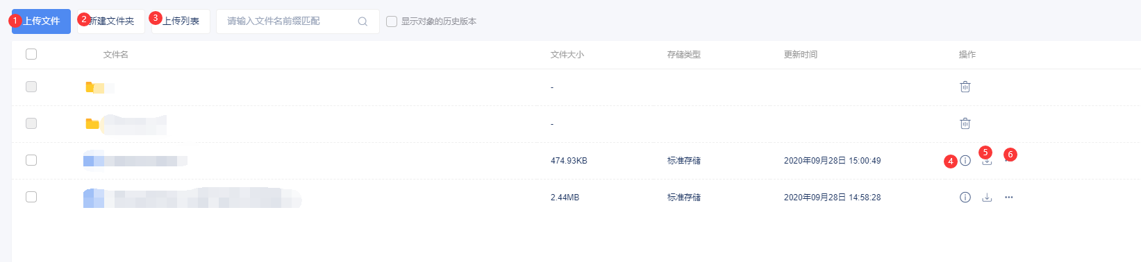 设置权限:设置对象读写权限(继承Bucket、私有、公共读、公共读写) 删除:删除该对象文件 |