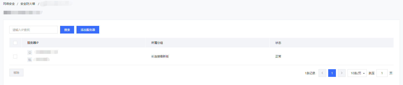 6、点击安全规则操作列表中管理服务器,可对安全规则进行服务器的添加及移除。
